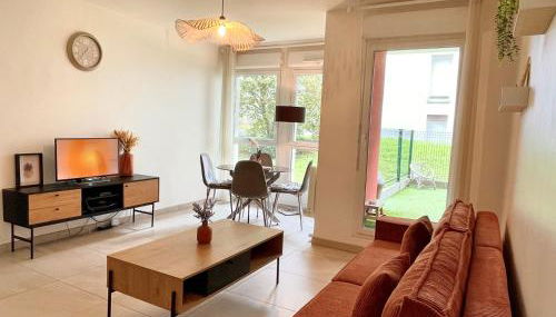 El apartamento cuenta con terraza y vistas al jardín, y dispone de 2 dormitorios, una sala de estar, TV de pantalla plana, una cocina equipada con nevera y horno, y 1 baño con bidet. Hay toallas y ropa de cama en el apartamento.