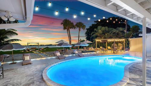 Deluxe Waterfront Villa with BBQ, Pool and Game Room, que tiene piscina al aire libre, jardín y bar, ofrece alojamiento en West Palm Beach con wifi gratis y vistas a la piscina.