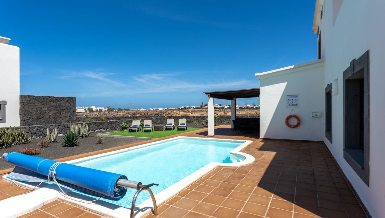 Las Coral Deluxe Villas ofrecen una escapada de lujo en Playa Blanca, Lanzarote. Estas modernas villas dúplex, ideales para familias y parejas, proporcionan tranquilidad e impresionantes vistas del atardecer. Elige entre nuestras exclusivas villas de tres dormitorios de 135 m² (para 6 personas) o nuestras villas de dos dormitorios de 85 m² (para 4 personas), cada una con piscina privada climatizada (climatización con cargo adicional), terraza amueblada con barbacoa y vistas al mar. Todas las villas están equipadas con wifi gratuito, cocina totalmente equipada con lavavajillas y cafetera, y baños con artículos de aseo y secador de pelo. Camas extragrandes y cajas fuertes en las villas se suman a la comodidad. Disfruta del magnífico clima de Playa Blanca y relájate con estilo.
