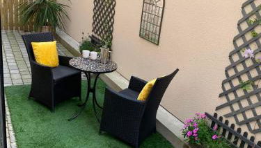 Este apartamento consta de 1 dormitorio, una sala de estar, una cocina totalmente equipada con nevera y cafetera, y 1 baño con ducha y artículos de aseo gratuitos. Hay toallas y ropa de cama en el apartamento.