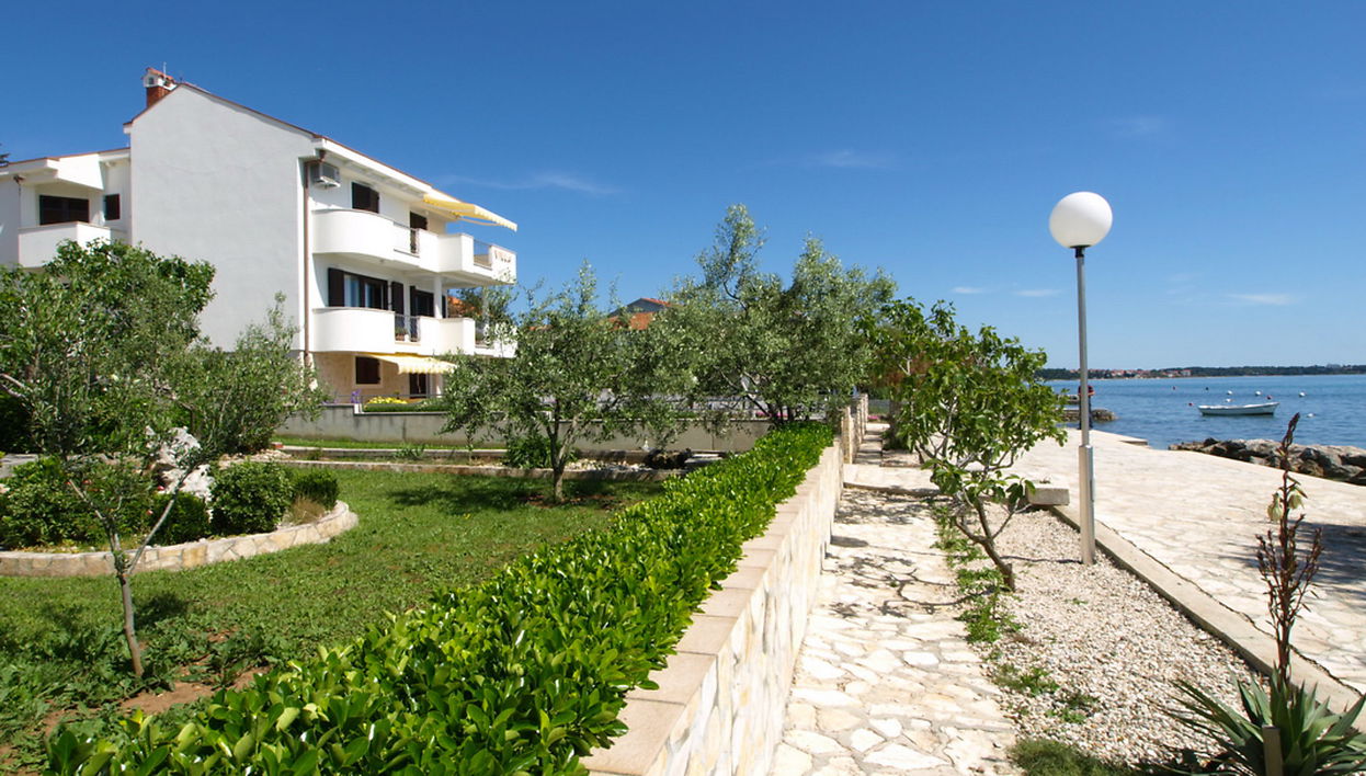 Casa de tres viviendas "Maras". En el barrio de Diklo, a 6 km del centro de Zadar, lugar soleado, elevado, a 10 m del mar, a 10 m de la playa, en una zona peatonal. Comunitario: barbacoa. En el inmueble: acceso a internet, lavadora. Aparcamiento junto a la casa en el mismo terreno. Tienda, restaurante 200 m, parada autobús 7.6 km, playa de gravilla 2.5 km, zona para bañarse 2.5 km, playa de cemento 10 m. Tenis, polideportivo 200 m.