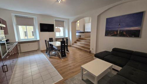 FERIENWOHNUNG 77m2 APARTMENT 2 RAUM WOHNUNG im ZITTAUER STADTZENTRUM INNENSTADT INNENRING TOP LAGE MARKT UND RATHAUS NÄHE está en Zittau, a 7 min a pie de Universidad de Ciencias Aplicadas de Zittau/Goerlitz y a 35 km de Zoo de Görlitz, y ofrece alojamiento con equipamiento como wifi gratis y TV de pantalla plana.